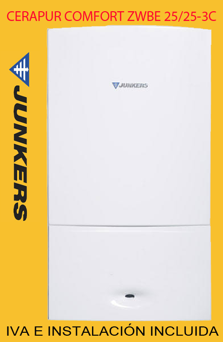 - Caldera Junkers Cerapur Comfort ZWBE 25-3C con intercambiador de calor de Aluminio-Silicio, diseñado y fabricado contecnología Bosch.